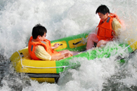 云溪漂流從關(guān)刀鎮(zhèn)上堡村夜合橋至道上村的峽谷河段,長度約6.2公里,梯級總落差176米。其風(fēng)景資源主要包括,碧龍?zhí)镀俨迹洳罴s53米)及其上下游的峽谷景觀。峽谷地勢險要,潔白的巖石連綿不絕,形成數(shù)千米的白石灘,溪水長流不斷,跌水成瀑,積水成潭,溪面寬窄隨峽谷地形變化,構(gòu)成“瀑潭連綴,奇山怪石” 優(yōu)美的峽谷景觀。云溪漂流項(xiàng)目利用豐富奇特的河道資源,進(jìn)行合理整治和建設(shè),在保護(hù)原生態(tài)景觀的同時,保證趣味性、刺激性和安全性。