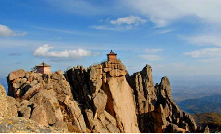 五臺(tái)山:山西省忻州市五臺(tái)山,由古老結(jié)晶巖構(gòu)成,北部切割深峻,五峰聳立,峰頂平坦如臺(tái):東臺(tái)望海峰、西臺(tái)掛月峰、南臺(tái)錦繡峰、北臺(tái)葉斗峰、中臺(tái)翠巖峰。